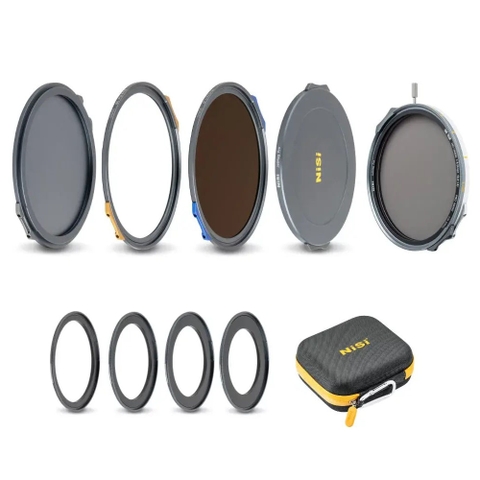 Kính lọc VND (Variable ND) đi kèm cung cấp khả năng giảm sáng từ 1 đến 5 stop, và có thể mở rộng lên đến 9 stop bằng cách xếp chồng thêm kính lọc FS ND 4 stop. Nhiều vòng chuyển đổi từ tính (magnetic adapter rings) cho phép bạn sử dụng bộ lọc trên nhiều đường kính ống kính (filter thread) khác nhau. Hộp đựng filter (caddy), nắp sau và nắp trước giúp bảo vệ kính lọc an toàn khi di chuyển hoặc không sử dụng.