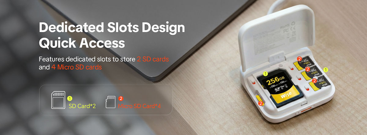 Bên cạnh hiệu năng mạnh mẽ, CreateMate Mini còn sở hữu thiết kế bền bỉ với lớp vỏ bọc cao su chống sốc và khả năng kháng nước, kháng bụi chuẩn IP54. Không gian bên trong được bố trí thông minh để chứa gọn 4 thẻ SD và 4 thẻ MicroSD (kèm que chọc SIM), đi kèm móc treo tiện lợi kiêm dây cáp kết nối, biến CreateMate Mini thành phụ kiện "bất ly thân" an toàn và gọn nhẹ cho mọi chuyến đi.