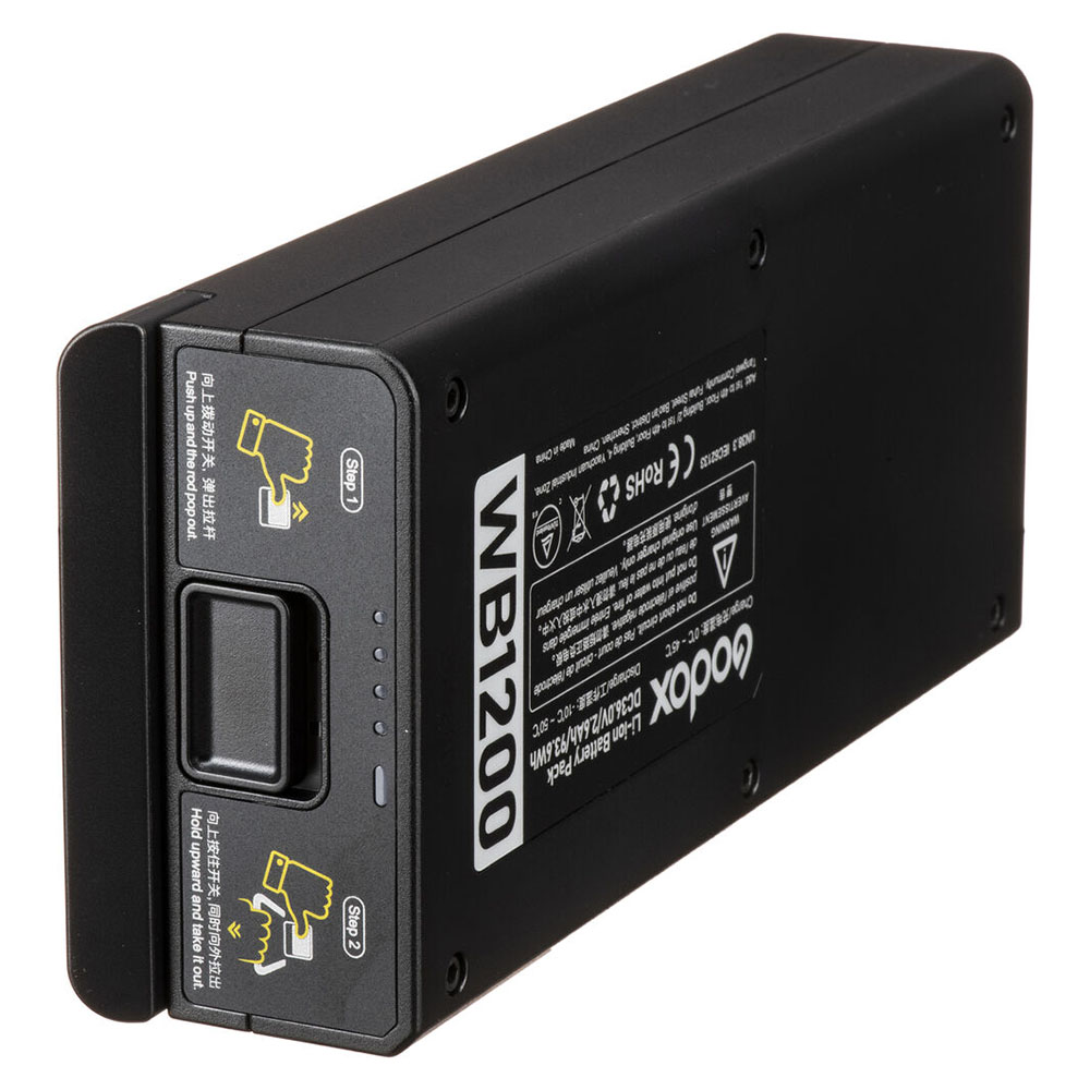 Godox WB1200 là Pin 36V, 2600mAh cho AD1200 Pro từ Godox được thiết kế cho hệ thống đèn flash AD1200 Pro.