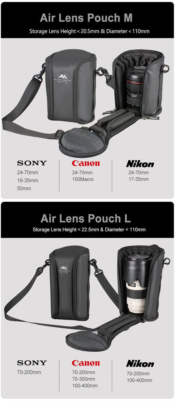 Bằng cách điều chỉnh lượng không khí bên trong hộp đựng, bạn có thể giữ kích thước nhỏ gọn khi cất trữ, và tăng khả năng bảo vệ tối đa cho ống kính khi sử dụng.