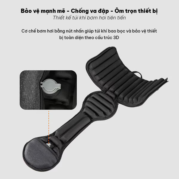 Summit Creative Lens Case với cơ chế bơm hơi bằng nút nhấn giúp túi khí bao bọc và bảo vệ thiết bị toàn diện theo cấu trúc 3D. Bằng cách bơm hoặc xả khí bên trong hộp đựng ống kính, bạn có thể dễ dàng mang theo một cách gọn nhẹ hoặc bảo vệ ống kính một cách chắc chắn khi cần.