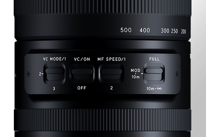 Ổn định hình ảnh VC hỗ trợ chụp cầm tay ở đầu ultra-telephoto 500mm với 3 chế độ: tiêu chuẩn, lia máy và ưu tiên khung hình.