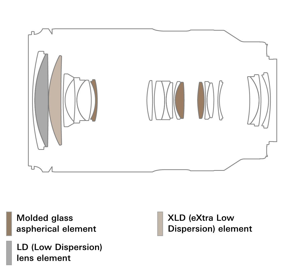 Hiệu suất hình ảnh xuất sắc: Cấu trúc quang học gồm 20 thấu kính trong 13 nhóm, với thấu kính XLD và LD kiểm soát quang sai hiệu quả. Lớp phủ BBAR-G2 giảm ghosting và flare, cho hình ảnh rõ nét ngay cả trong điều kiện ngược sáng.