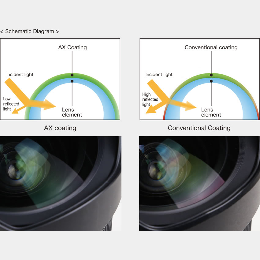 Ba loại lớp tráng phủ này có tác dụng làm giảm hiện tượng bóng ma và chống loé cho hình ảnh có chất lượng rõ ràng từ cạnh đến cạnh. Fluorine đã được cải tiến giúp chống mài mòn , bám nước, không bám dầu giúp dễ dàng lau sạch và ít dễ bị tác động bởi bụi bẩn, hơi ẩm và dấu vân tay quan trọng là giúp bảo vệ ống kính của bạn trong thời gian dài.