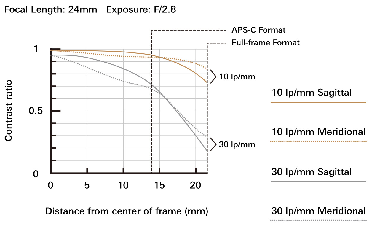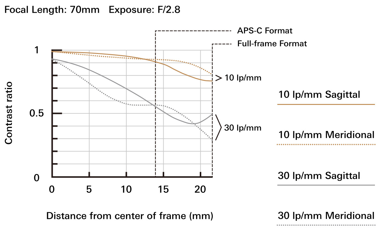 Việc sử dụng nguyên liệu thủy tinh chất lượng cao và chuyên biệt bảo đảm việc tạo màu chính xác và độ sắc nét cao hơn, rất thích hợp với các máy ảnh hiện nay có mật độ điểm ảnh cao. Cấu trúc quang học (17 lăng kính trong 12 nhóm) sử dụng 2 kính XR (chỉ số khúc xạ cao), 3 kính LD (chỉ số khuếch tán thấp), 3 kính GM (thấu kính phi cầu đúc) và một thấu kính phi cầu lai (hybrid). Cộng chung, cấu trúc các thấu kính này giảm thiểu độ sai màu theo trục thẳng, độ sai màu theo góc ngang, độ sai màu do hình cầu của lăng kính, độ méo hình, và giúp có được thiết kế gọn mà vẫn đạt được chất lượng hình ảnh vượt trội.