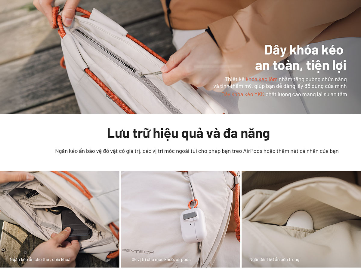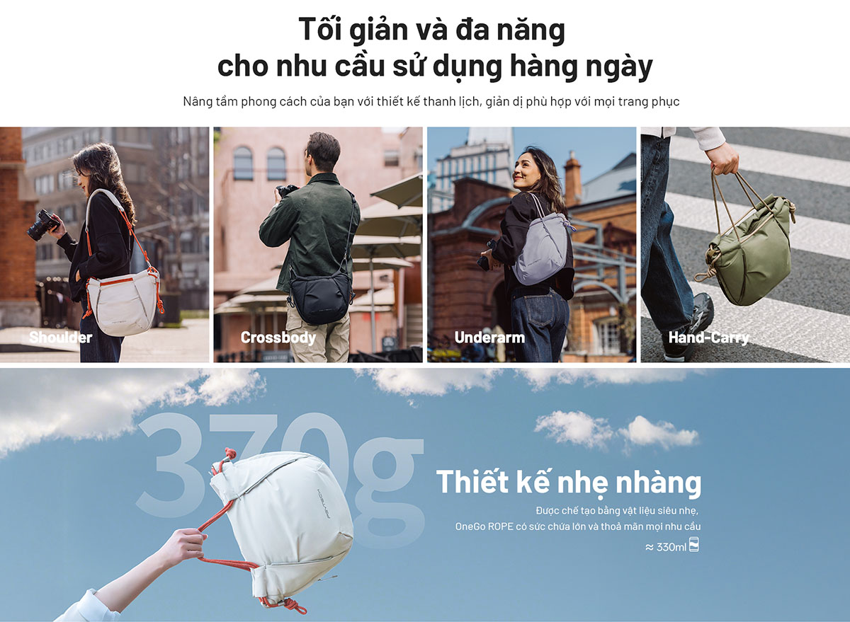 PGYTECH OneGo Rope mang phong cách trẻ trung với bốn màu sắc cá tính: Lilac, Forest, Midnight và Mist, phù hợp với nhiều gu thẩm mỹ khác nhau. Thiết kế dây đeo tiện lợi, khoang chứa đệm chắc chắn và ngăn phụ thông minh giúp bạn sắp xếp đồ dùng gọn gàng. Gọn nhẹ nhưng vẫn mạnh mẽ, OneGo Rope là người bạn đồng hành lý tưởng cho những buổi chụp ảnh dã ngoại, du lịch thành phố hay các hoạt động hàng ngày.