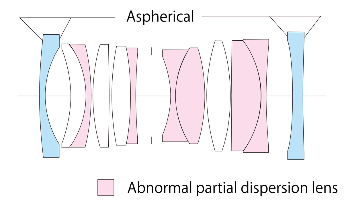 Cấu trúc này giúp loại bỏ hiệu quả nhiều dạng sai lệch quang học, đặc biệt là sai sắc trục, nhằm đạt hiệu năng cao nhất về độ sắc nét và tái tạo tương phản.