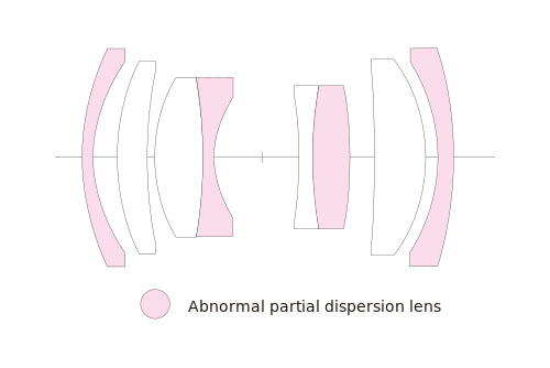 - Cấu trúc quang học: Bao gồm 8 thấu kính chia thành 6 nhóm, trong đó có 4 thấu kính sử dụng kính phân tán bán phần bất thường, đảm bảo hiệu suất không thỏa hiệp.