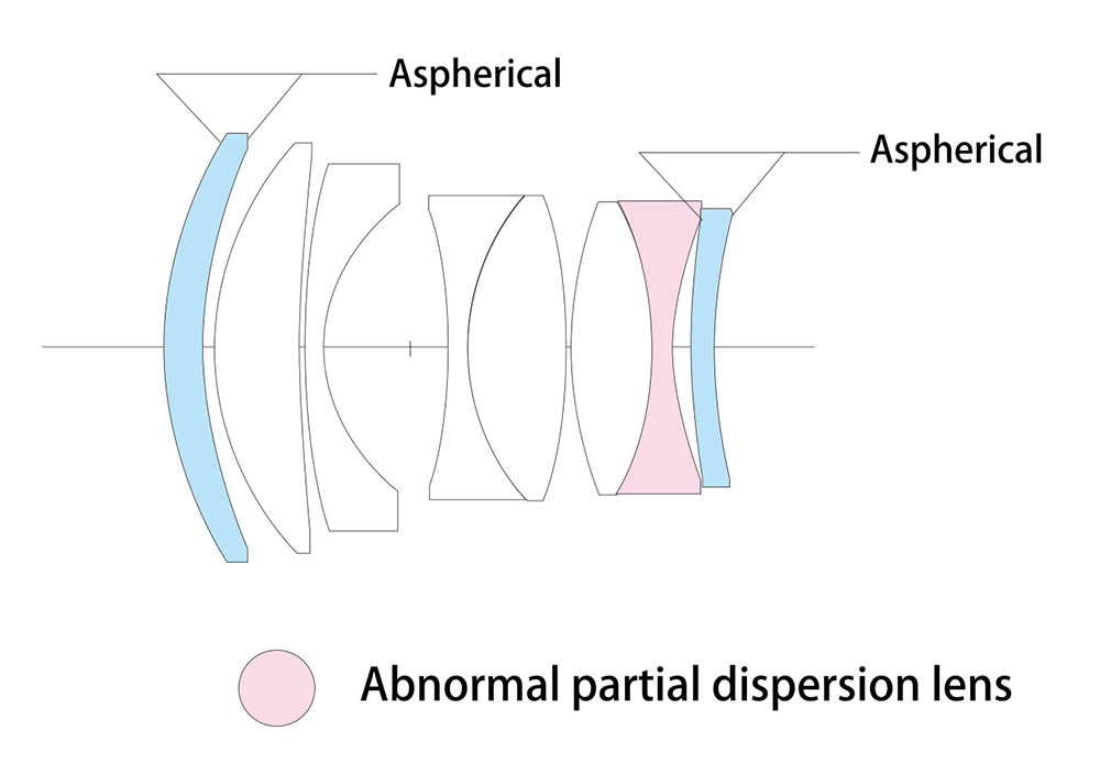Bằng các sử dụng hai yếu tố, với 2 mặt thấu kính phi cầu, bạn có thể thưởng thức hiệu suất quang học trung thực nhất từ khẩu độ tối đa, cũng như hiệu ứng xóa mờ bokeh nhẹ hàng nhờ vào 12 lá khẩu độ.