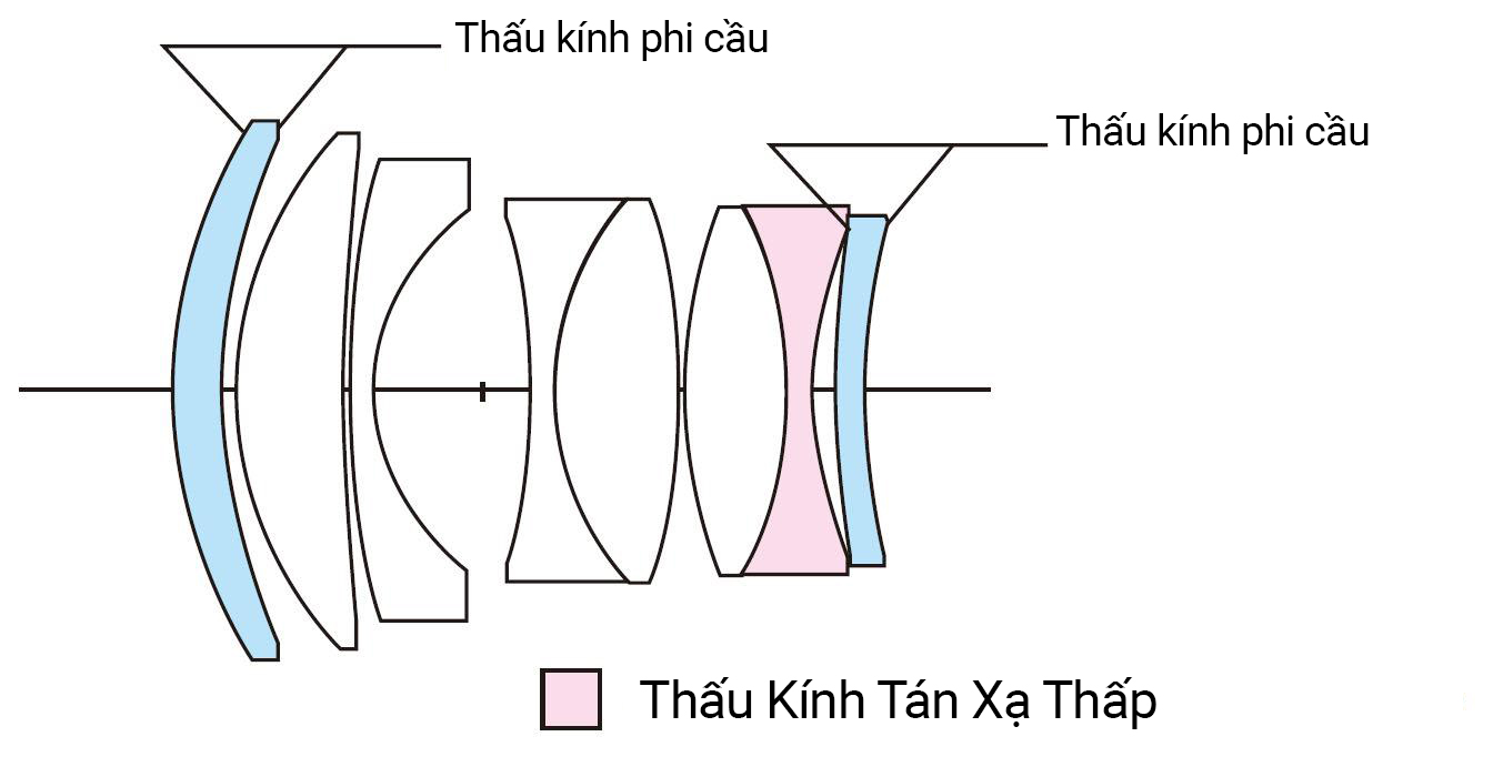 | Cấu trúc thấu kính | 8 thấu kính trong 6 nhóm |