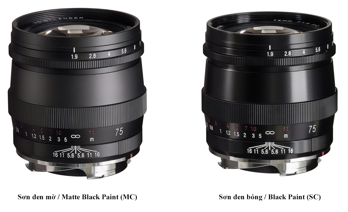 ULTRON 75mm F/1.9 có 02 phiên bản: Sơn đen mờ / Matte Black Paint (MC) và Sơn đen bóng / Black Paint (SC) để bạn lựa chọn. Ống kính này cũng có thể sử dụng cho máy ảnh Sony E, Fujifilm X và Nikon Z thông qua ngàm chuyển Voigtlander.