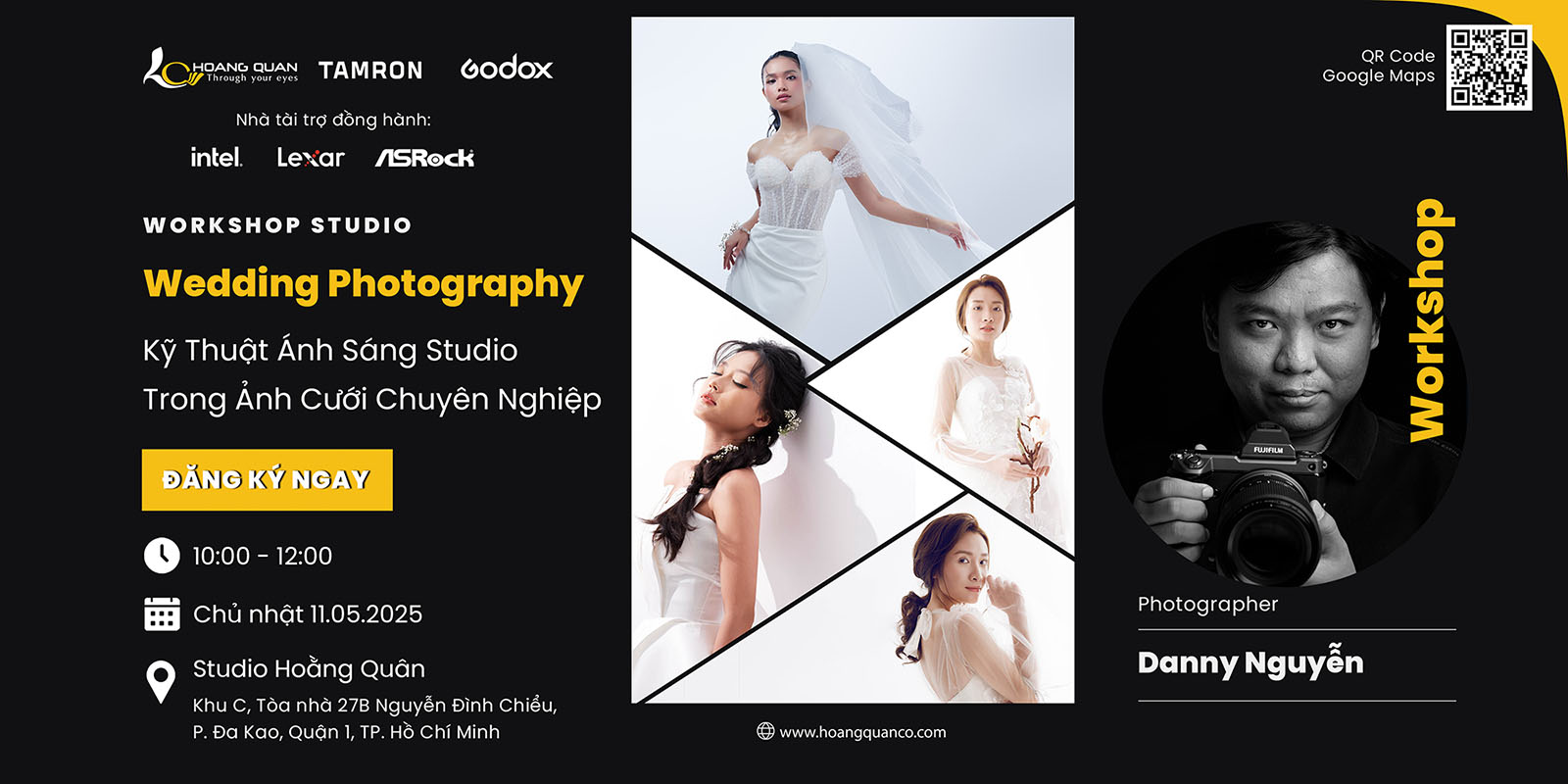 Cùng Hoằng Quân tham gia buổi Workshop Wedding Photography: KỸ THUẬT ÁNH SÁNG STUDIO TRONG ẢNH CƯỚI CHUYÊN NGHIỆP. NAG Danny Nguyễn sẽ chia sẻ các nội dung sau: